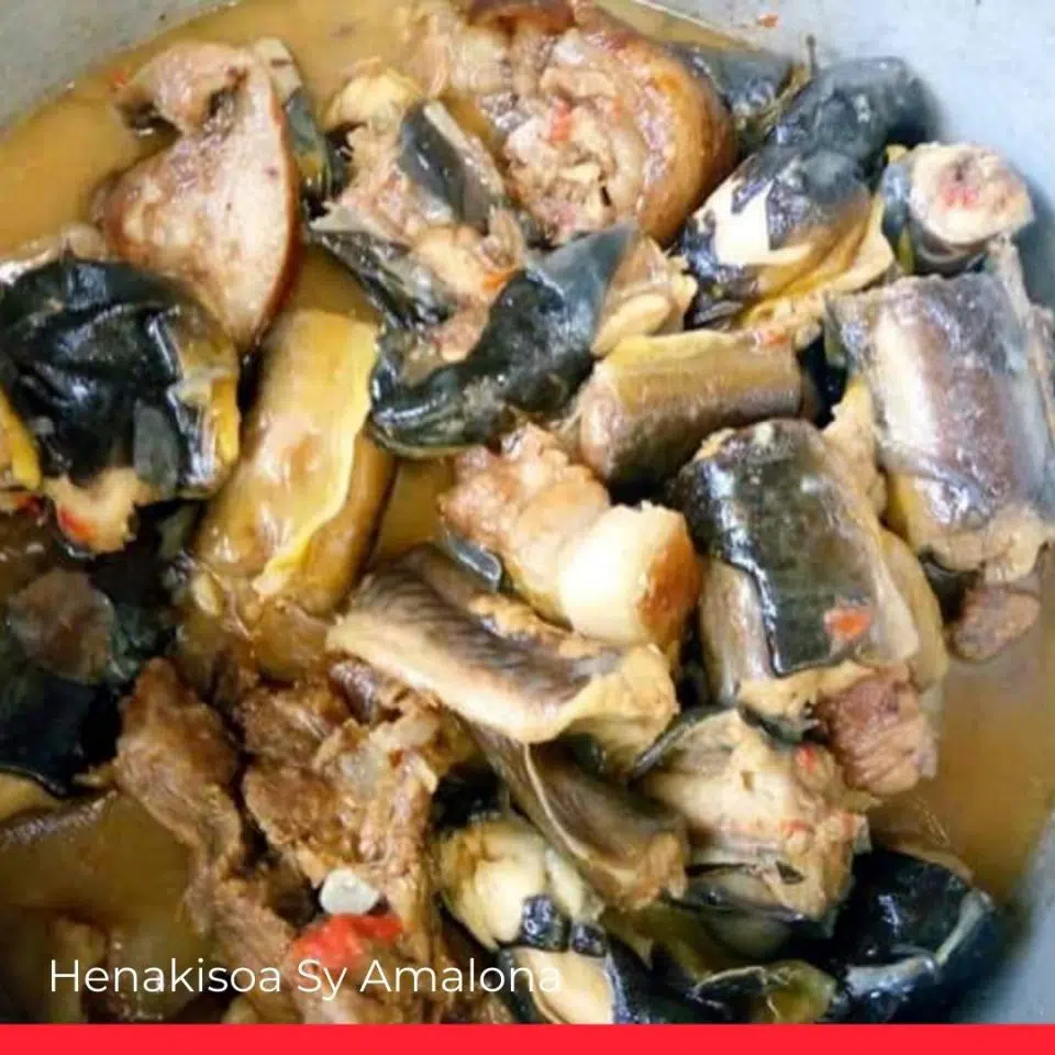 The henakisoa sy amalona, or pork with eel, is a traditional Malagasy dish that is part of the seven royal dishes.